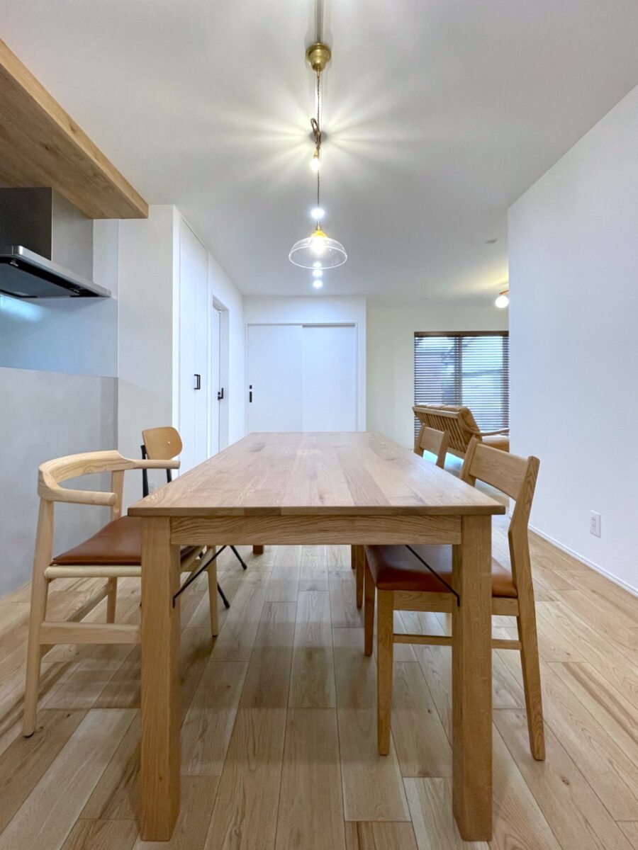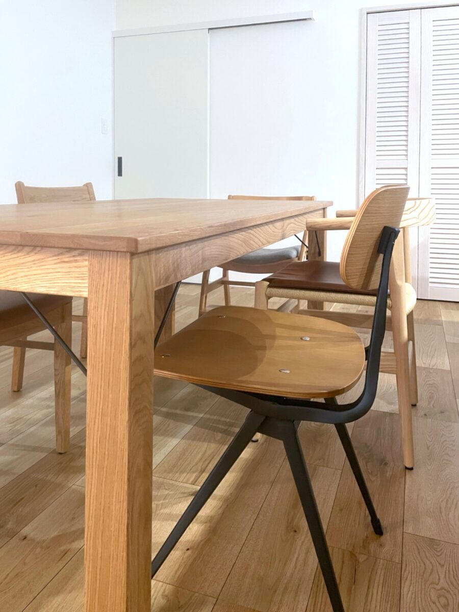 ダイニングには、無垢材でシンプルなデザインのテーブルを選定。