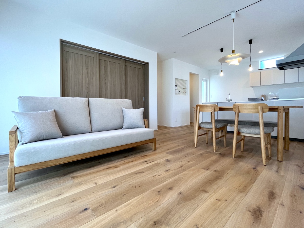 松江市内でのトータルコーディネート。 重厚感がありながらもロータイプですっきりとした見た目のソファ。片肘はオークの無垢材をセレクト。カラーは人気のサンドベージュ。 ダイニングセ […]